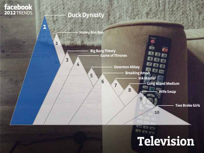 In the United States, the biggest event of the year on Facebook was the presidential election, followed by the Superbowl and the death of Whitney Houston, while the most check-ins came from Times Square, New York. The top three books are all from The Hunger Games series, and Instagram was the most talked-about technology topic. Facebook lists "TBH" as the most popular meme of the year, followed by "YOLO." You can check up on all of the statistics over at Facebook Stories.